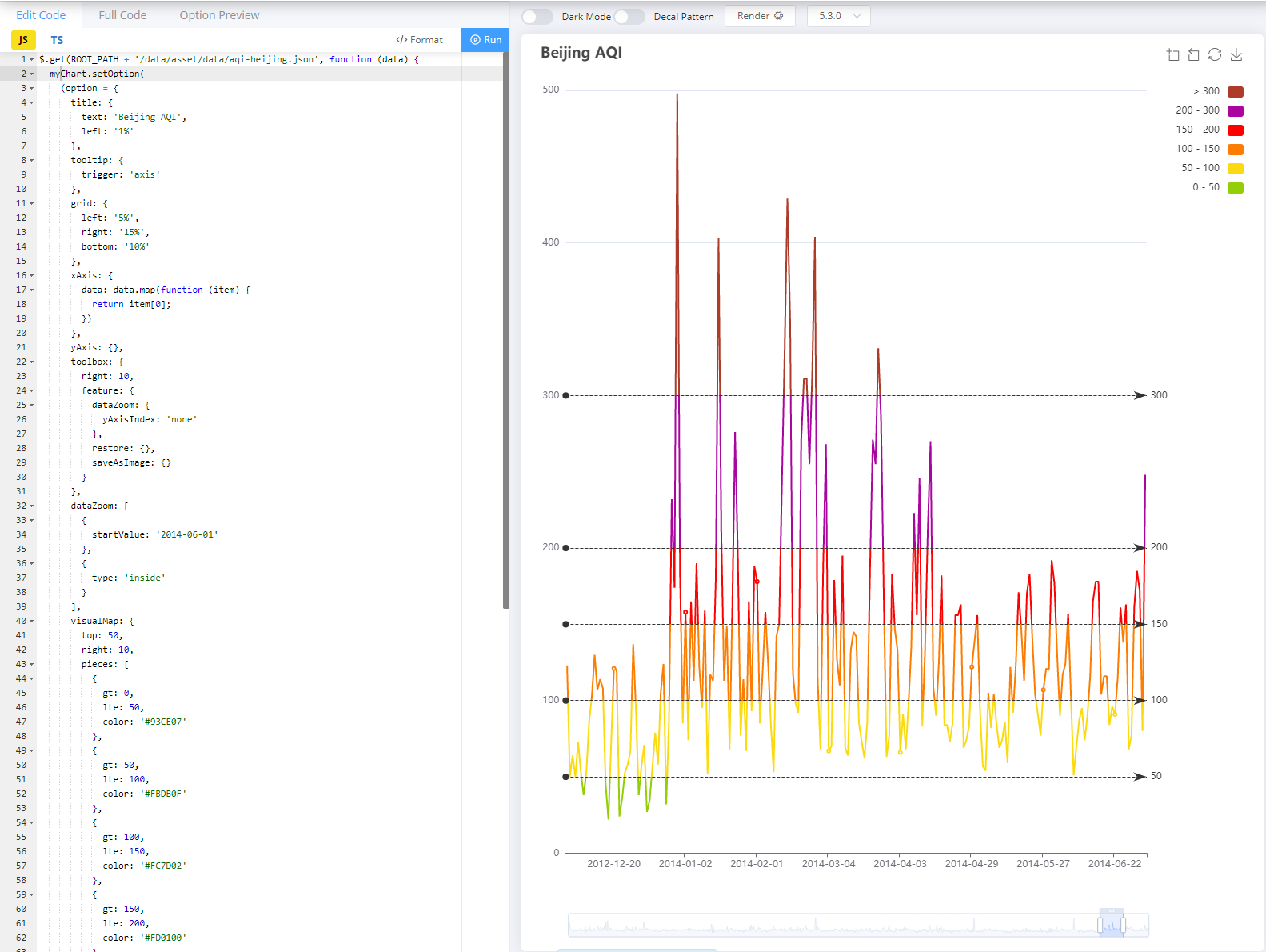 js 부분에서 myChart에 초기화된 echart 인스턴스를 만들어